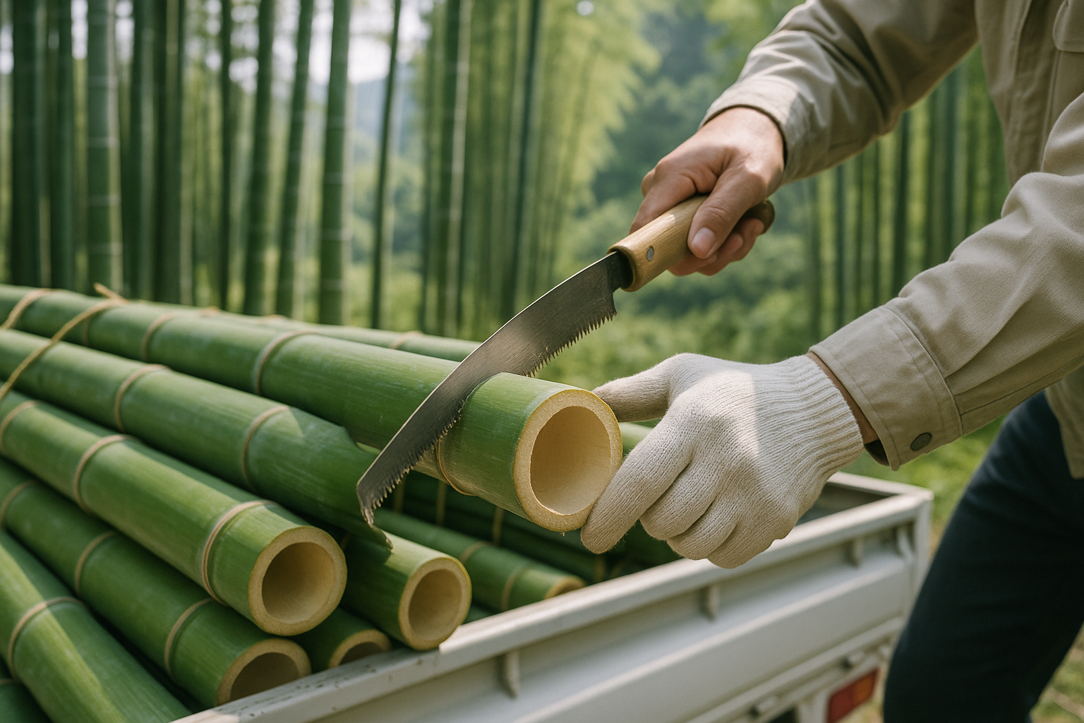 太くてまっすぐな竹を厳選し、一本一本丁寧に伐り出します。