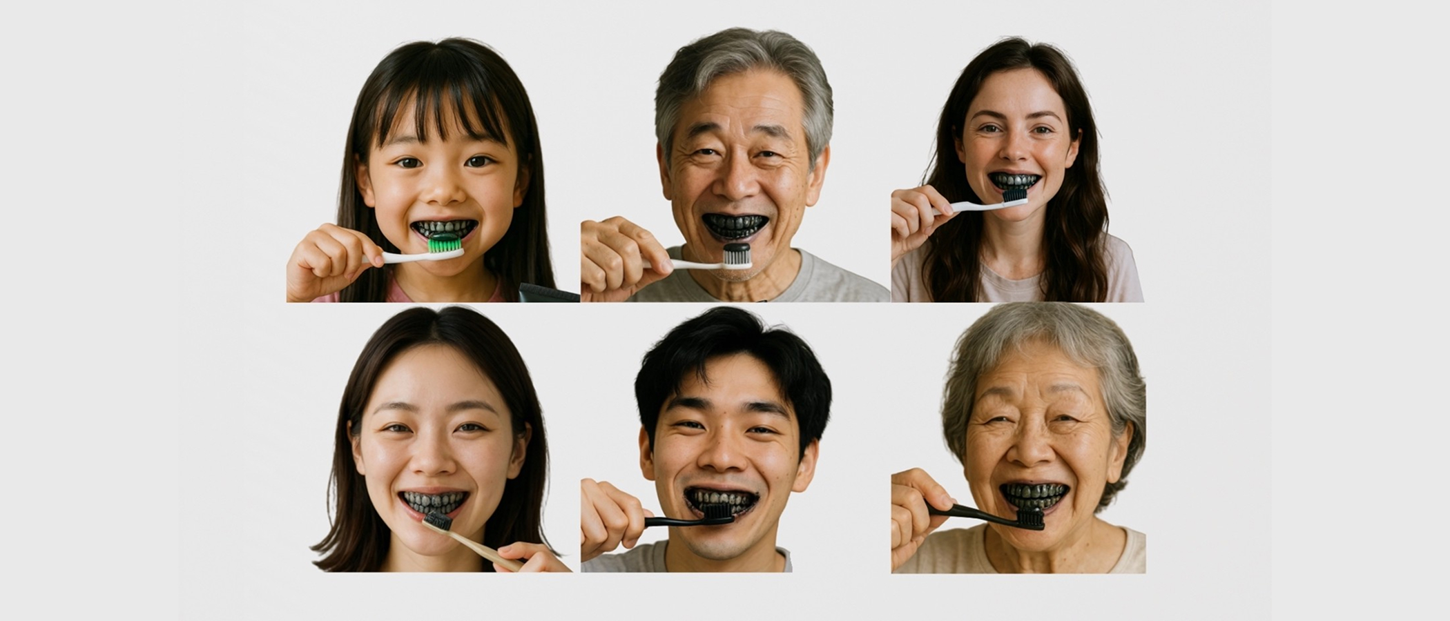竹炭には天然ミネラルと炭素成分による抗菌力があり、口内環境の雑菌繁殖を抑え清潔をサポートします。